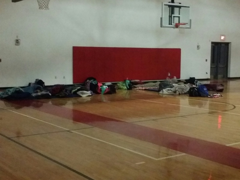 On both Monday and Tuesday evening, after service events, the Riverdale Elementary gymnasium became home to the MSU students and faculty: a welcome sleeping arrangement after spending two nights on the bus!