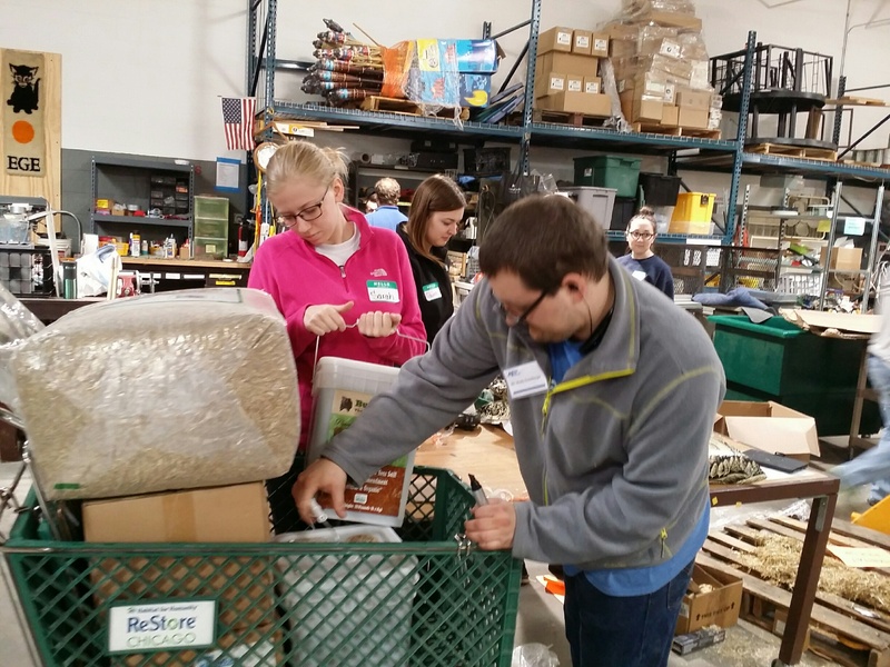When arriving at the Restore, once again CORE group members were welcomed with hospitality and many thanks. Habitat ReStore volunteer coordinator Nina Fuentes stated that with the thousands of non-profit organizations throughout Chicago, getting volunteer groups to come to their Restore is difficult and MSU’s CORE group’s work was sincerely appreciated. While working at the Restore, CORE group members sorted, cleaned, stacked, priced, and shelved items, from gloves to doors and everything in-between!