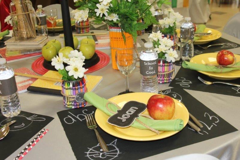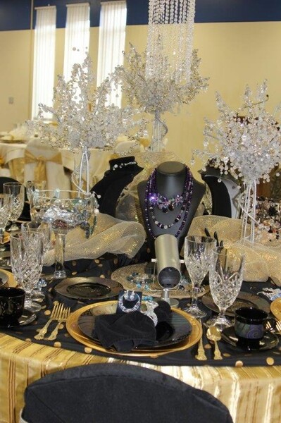 Table themes and designers included the following: “Renaissance Gold” by Shireen Grinager of Mayville; “Sincerely Yours” by Kim Lauf, Mayville, and Janice Thoreson, Buxton, N.D.; “As Time Goes By” by Donna Olson, Mayville, and Barb Kram, Langdon, N.D.; “Copper‘tone’ Holiday” by Donna Olson, Mayville; “Petal to the Metal” by Barb Kram, Langdon; “Pearls, Petals, and Lace” by Joan Osland, Char Lee, Sue Strand, and Ruth vanWechel of Mayville and Pam Carlson, Portland, N.D.; “’Mumms’ the Word” by Judy Semmens and Pat Osland, Mayville, and Becky Melhus and Diane Johnson, Portland; “Here Comes the Bride” by Marilyn Holman, Mayville, and Bertha Sand, Galesburg, N.D.; “Day at the Derby” by Debbie Hagen, Sharyl Hanson, and Renee Sobolik of Mayville and Peggy Schultz, Fargo, N.D.; “Restore My Potted Soil” by Gaylene Johnson, Cummings, N.D., and Sherri Hettervig, Mayville; “Oh, Darling, Let’s Be Adventurers” by Sandy Braaten, Mayville; “Old Times” by Kelly Morrison and Bob Kozojed, Mayville; “Something to Crow About” by Molly Lenaburg, Portland; “Blue on Blue” by Jackie Kuhle, Mayville; “The Real McCoy” by Sarah Batesel, Portland, Margit Eastman, Marge Fugleberg, Shannon Hofer, Betty Karaim, and Kelly Kornkven, Mayville, and Aubrey Madler, Buxton, N.D.; “Peacock Garden” by Mary Iverson, Mayville; “The Friendly Village of 1883” by Jayme Trenbeath, Thompson, N.D., and Laura Brudvik, West Fargo, N.D.; “Groovin’ Back to the 70’s” by Becky Gunderson, Portland; “Popcorn Junkies” by Rhonda Nelson, Mandi Domier, and Jessica Amb, Portland; “Clue” by Kathy Hase, Big Lake, Minn., and Kaliann Behrens, Shakopee, Minn.; “Emerald Islae” by Jacque Moore, Mayville, Jill Carter, Reiles Acres, N.D., and Stephanie Winterquist, Argusville, N.D.; “Proceed to Party” designed by Michelle Braaten, Portland, and Loree Stenehjem, Mayville, and sponsored by the First & Farmers Bank of Mayville and Portland; “Out of the Blue” by Elaine Aune, Mayville, and Becky Willison, West Fargo; “Southwest Memories” by Winona Stroble and Jenell Braseth, Mayville; “Feelin’ a Li’l Owly” by Brenda Chandler, Portland, and Bonnie Enger and Tammy Volla, Mayville; “Ice Cold Watermelon” by Cheryl Angen, Mayville, and Audrey Myklebust, Devils Lake, N.D.; “Happy Birthday to Us!” by Greta Paschke and Audrey Paschke, Mayville; “Babushka’s Ukrainian Easter” by Heidi Krivarchka and Linda Olson, Mayville; “Cool for School” by Paige Strom and Joan Huus,