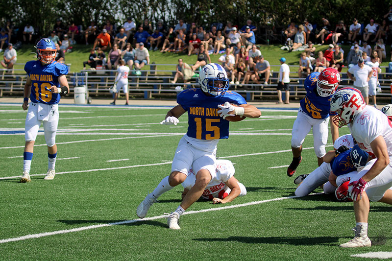 Click on a thumbnail below then use the arrow key to scroll through scenes from Shrine Bowl 2022 at Mayville State University.