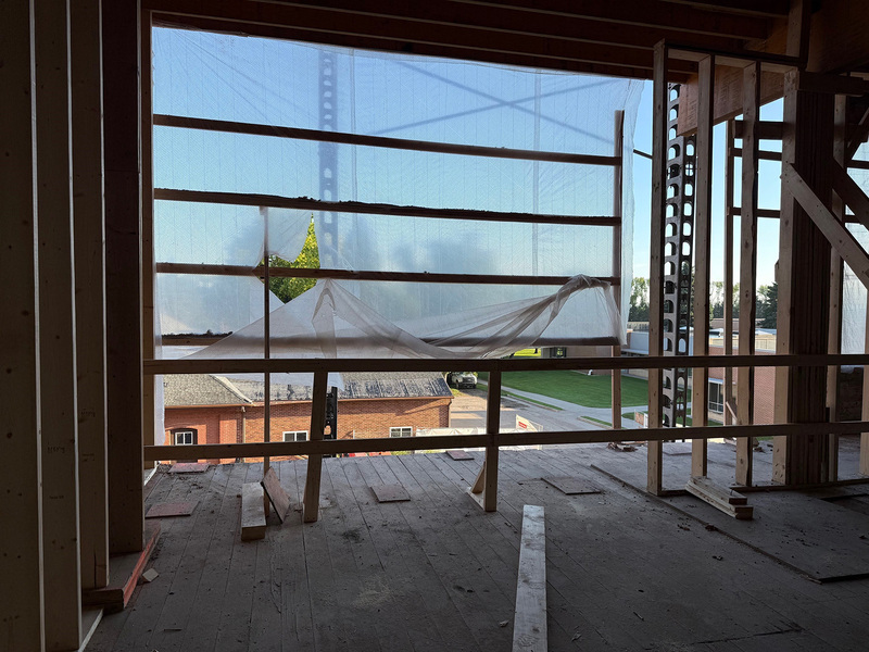 Outside, an elaborate scaffolding system is helping to raise and lower workers as they removed and now will replace brick. Much of the brick could be removed by hand, but in some places, tools were needed. This same exterior scaffolding system was used when building the addition on the west end of the building. When work on the north wall is finished, the scaffolding will be moved to the east end to assist workers as the east addition is built.