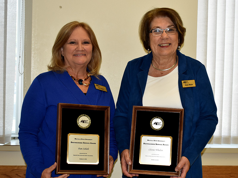 Pam Soholt and Cleone Whelan have devoted countless hours of their time serving their alma mater, making weekends like Homecoming 2022 possible. Their love for Mayville State University is evident in the many ways in which they support and promote. We are truly blessed through the work of Pam and Cleone and all of the Alumni Association board members. Because of their efforts, the Mayville State legacy of service continues.
