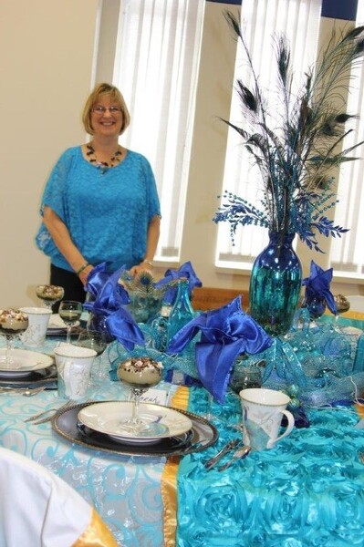 #3 - Donna Olson and her niece Barb Kram designed and were hostesses for the “As Time Goes By” table, which featured clocks. Even the designs on the plates were the faces of clocks.
