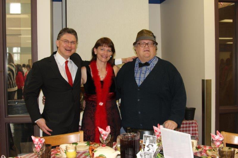 Gary Hagen, Rob Lauf, and Merwin Lyng of Mayville, and Paul Batesel of Portland, outfitted in their finest, served as greeters and hosts throughout the morning. Members of the Mayville State jazz band provided musical entertainment.